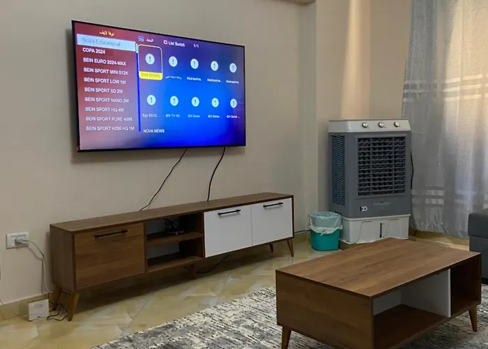 The 1-room Cozy Flat In Nasr City Cairo is located about 6 km from the Khafre's Pyramid and within a 10-minute drive of the Soly Spa. The spacious 130 m² apartment provides guests with garden views and a barber shop.